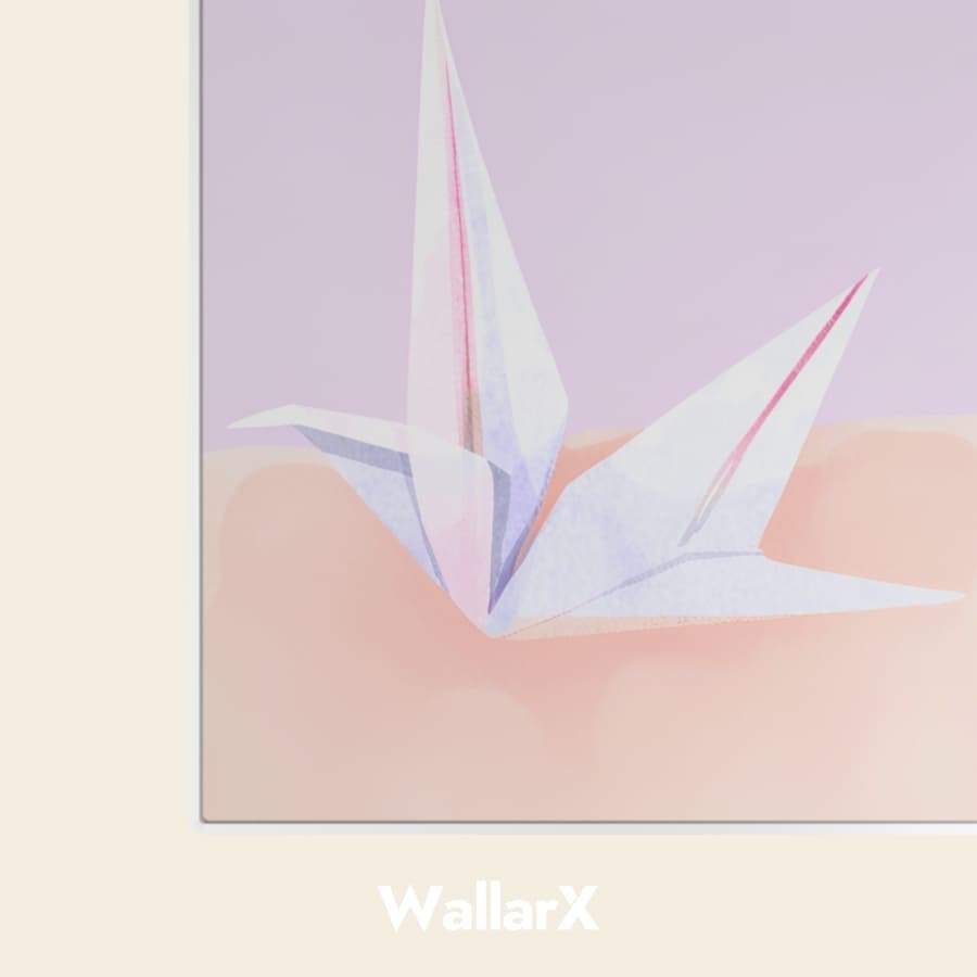 Light Orange Paper Crane Metal Poster, Watercolor Effect