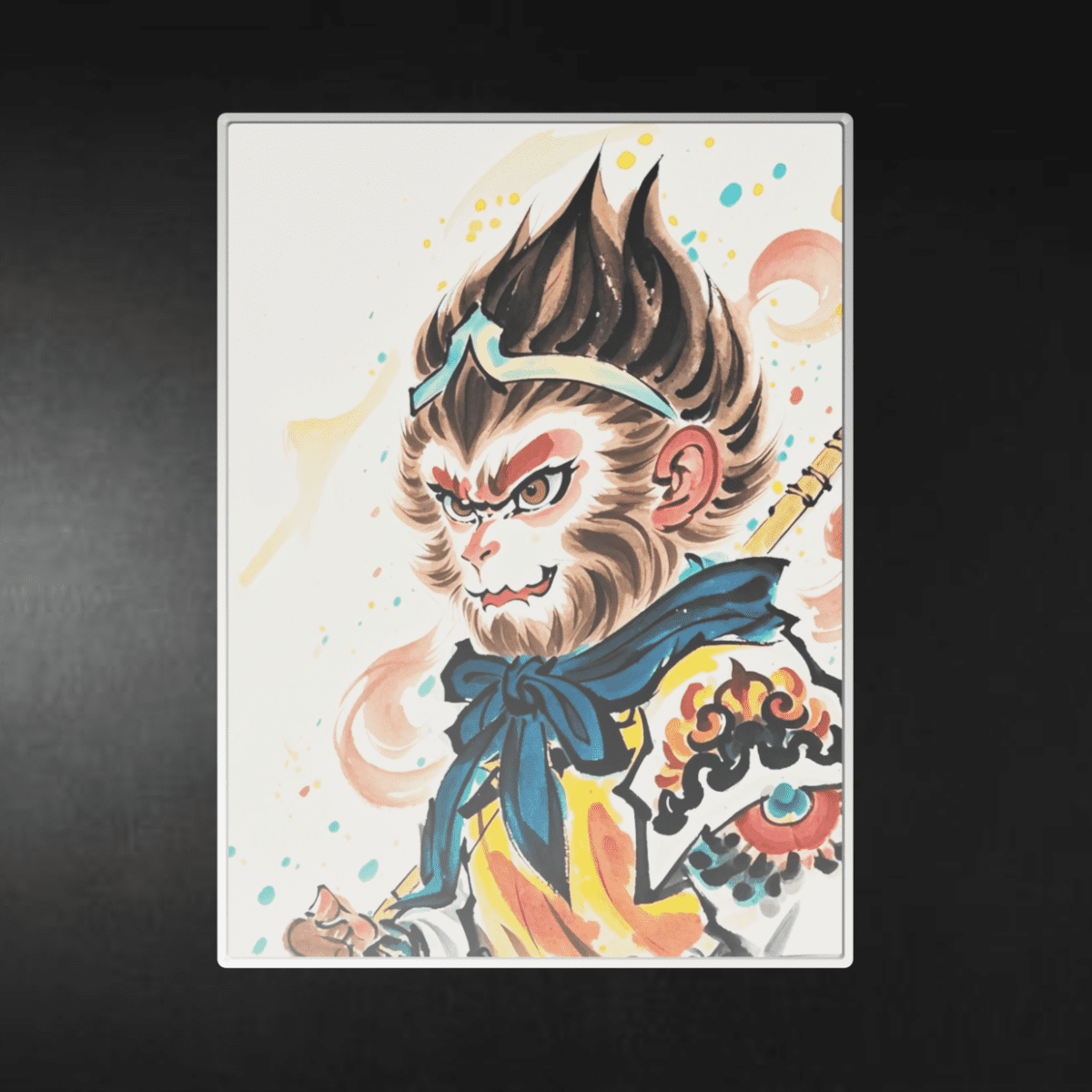 Experience the vibrant and bold colors of the Monkey King portrait metal print! Each print is crafted with high-quality colors for a stunning, long-lasting display.