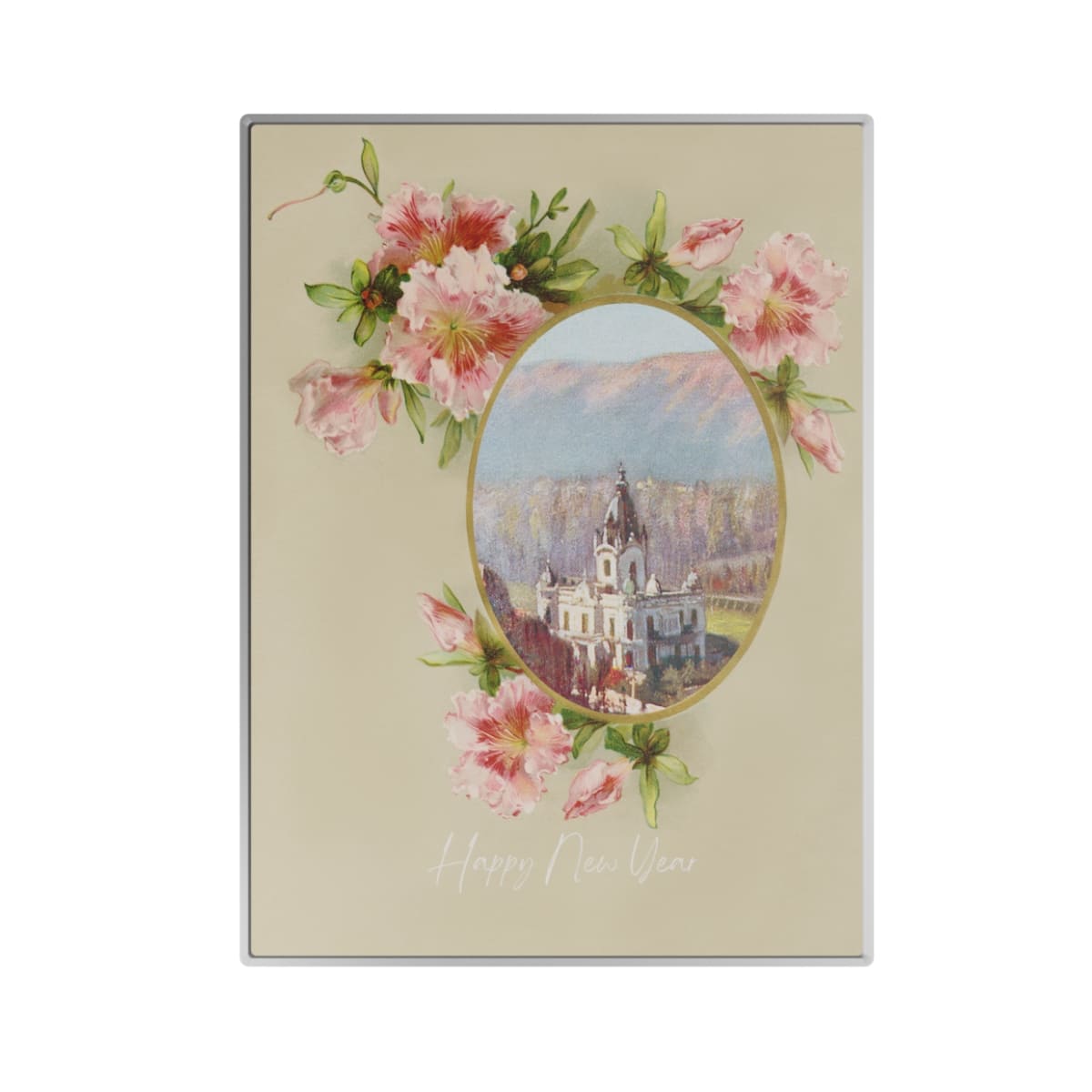 Neuschwanstein Castle with Flower, Happy New Year Metal Poster