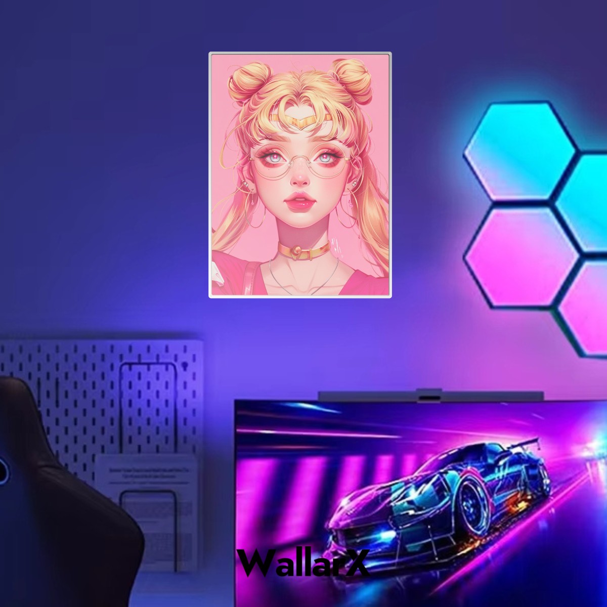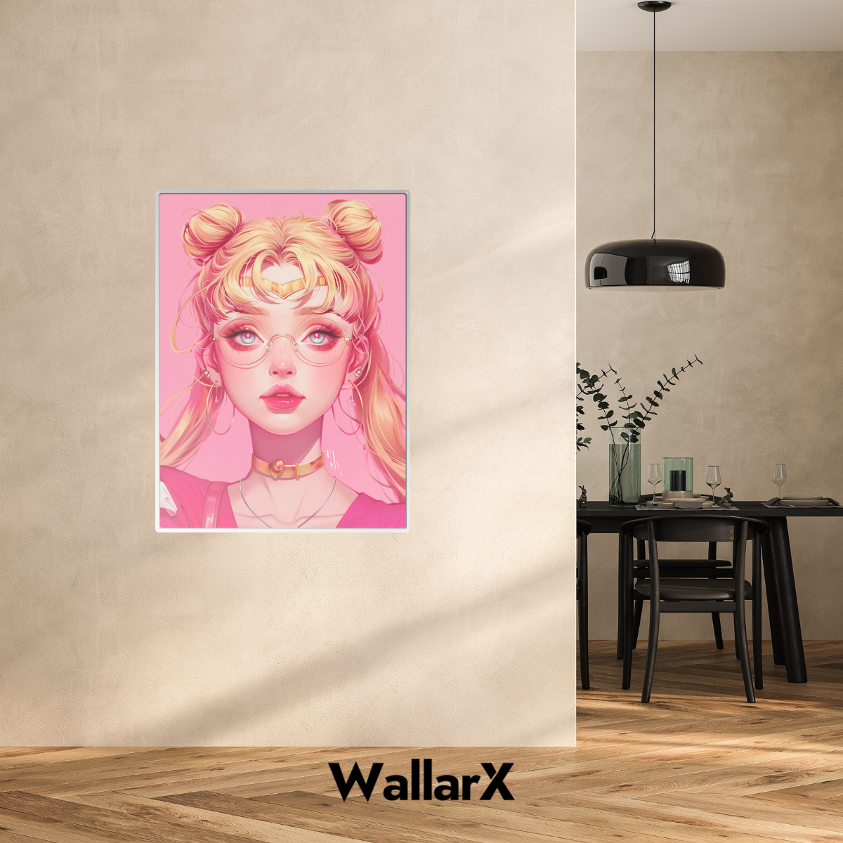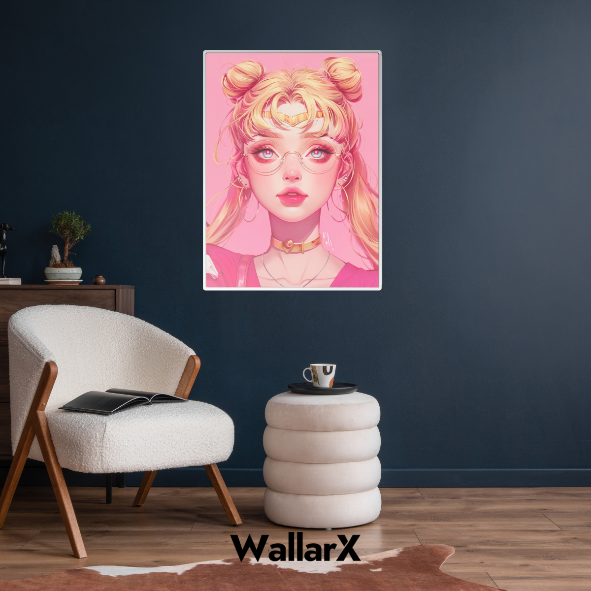 Sailor Moon Metal Poster, Pink Cyberpunk Anime
