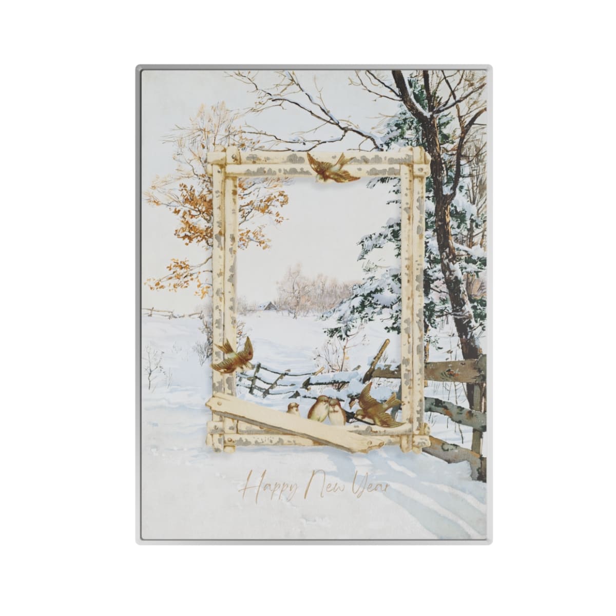 Snow Covered Pasture, Happy New Year Metal Poster